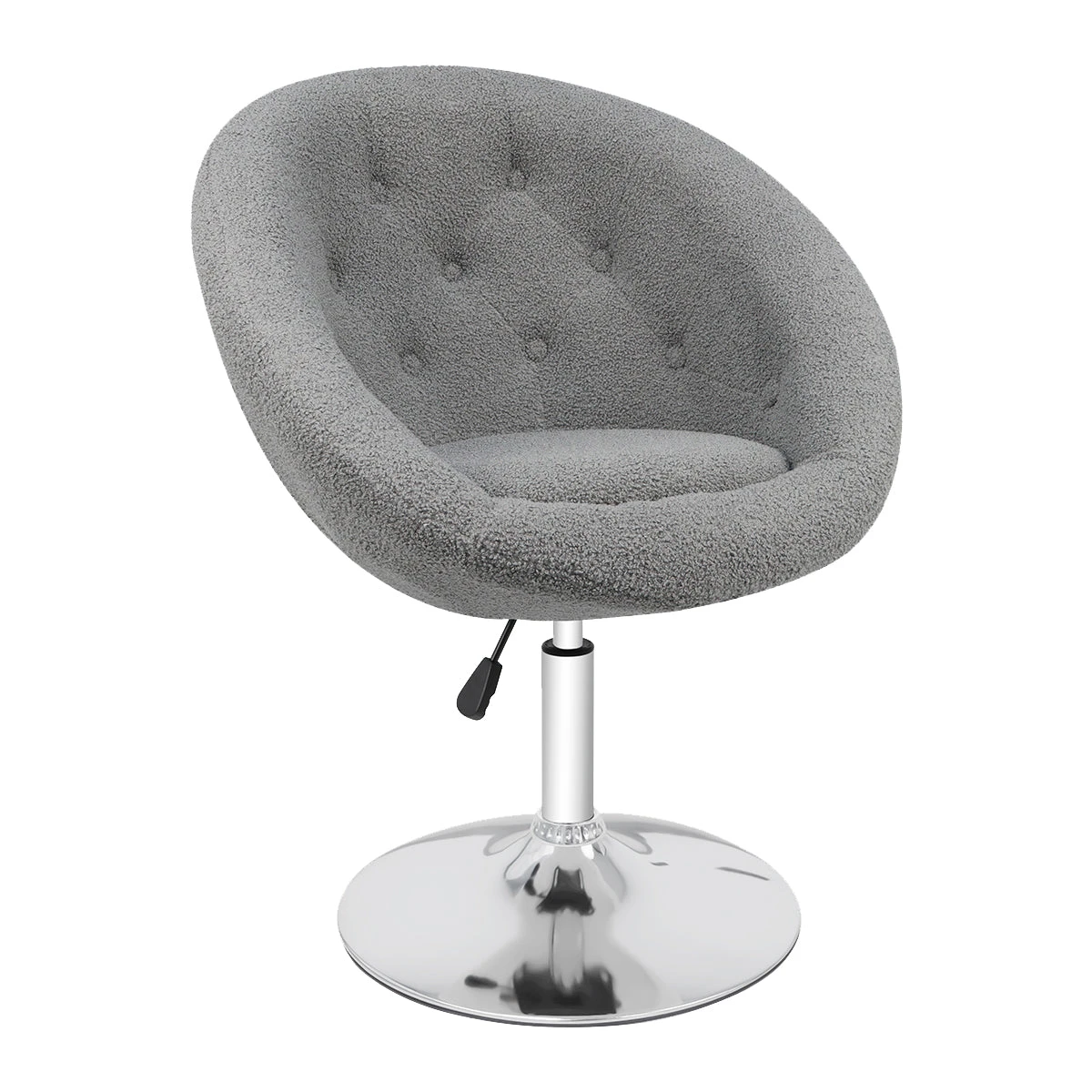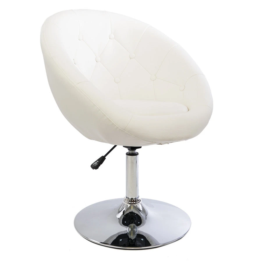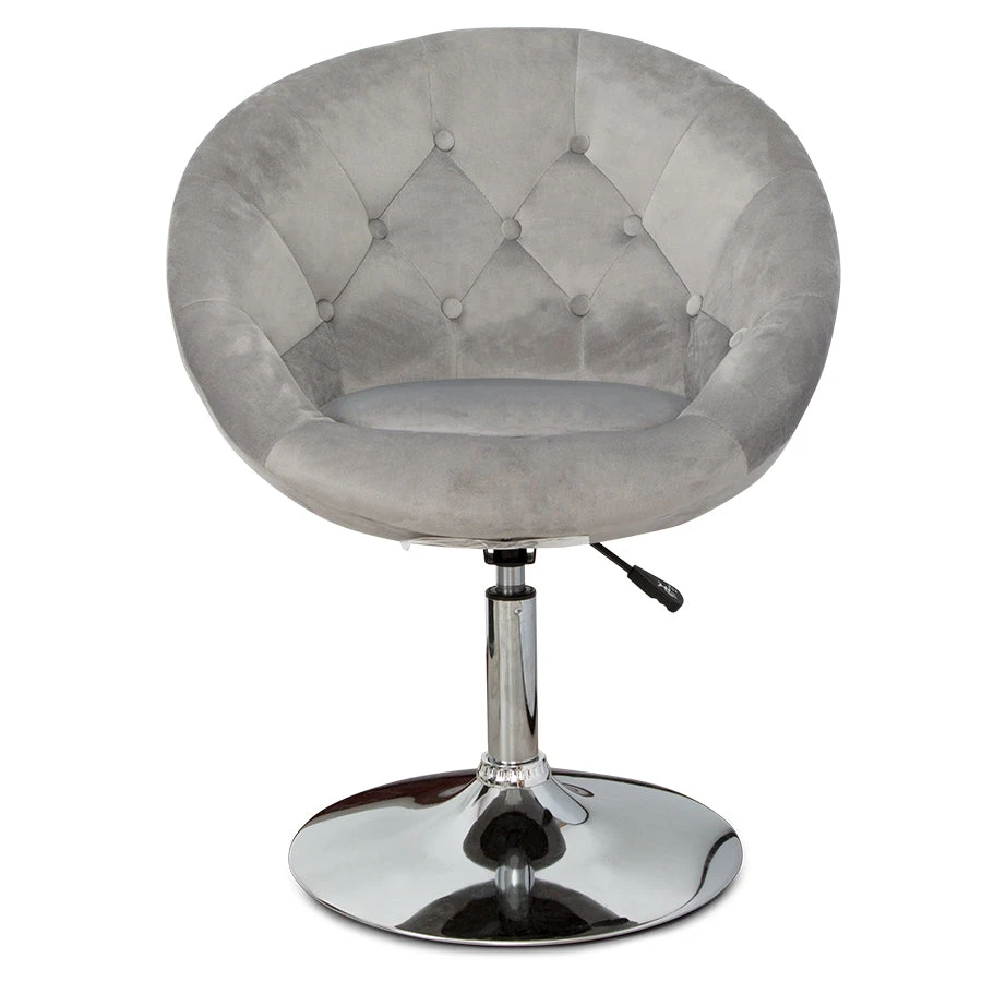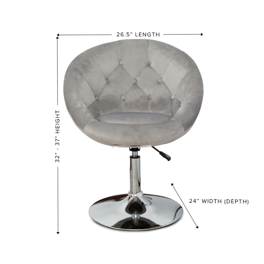 Fall into the most comfortable vanity chair the Antoinette, with its beautiful button-tufting and cushioned body-hugging seat. A pneumatic chair with a lever to adjust the height. Includes a polished, mirrored flat base and a 360-degree swivel seat. Available in leatherette (faux leather), smooth velvet, crushed velvet, or chunky boucle fabric.