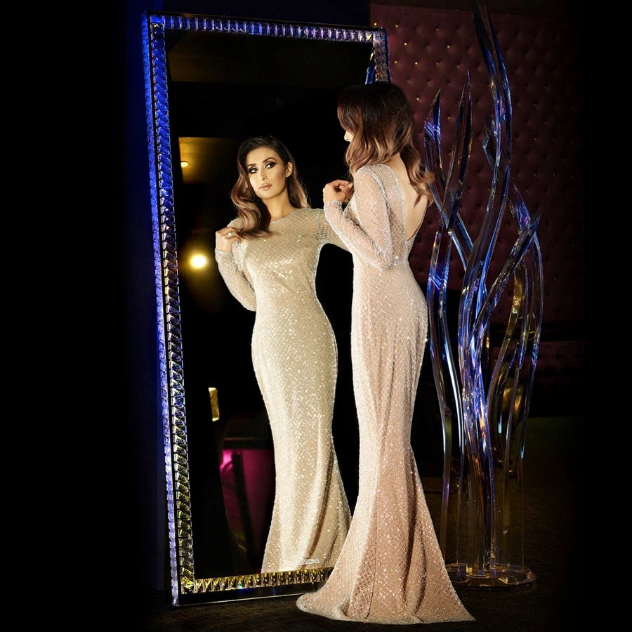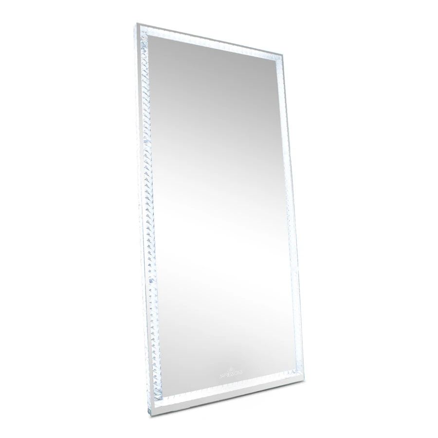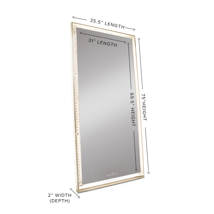 Designed in collaboration with Tamanna Roashan (@DressYourFace and @DressYourPlace). The Radiant Premium Illuminated Crystal Floor Mirror is the flagship of the Diamond Collection that brightens the room with its built-in energy-efficient LED strip lights. With the touch-sensitive power remote, you can transition from cool to warm lighting. Adjust the brightness to the level you want!