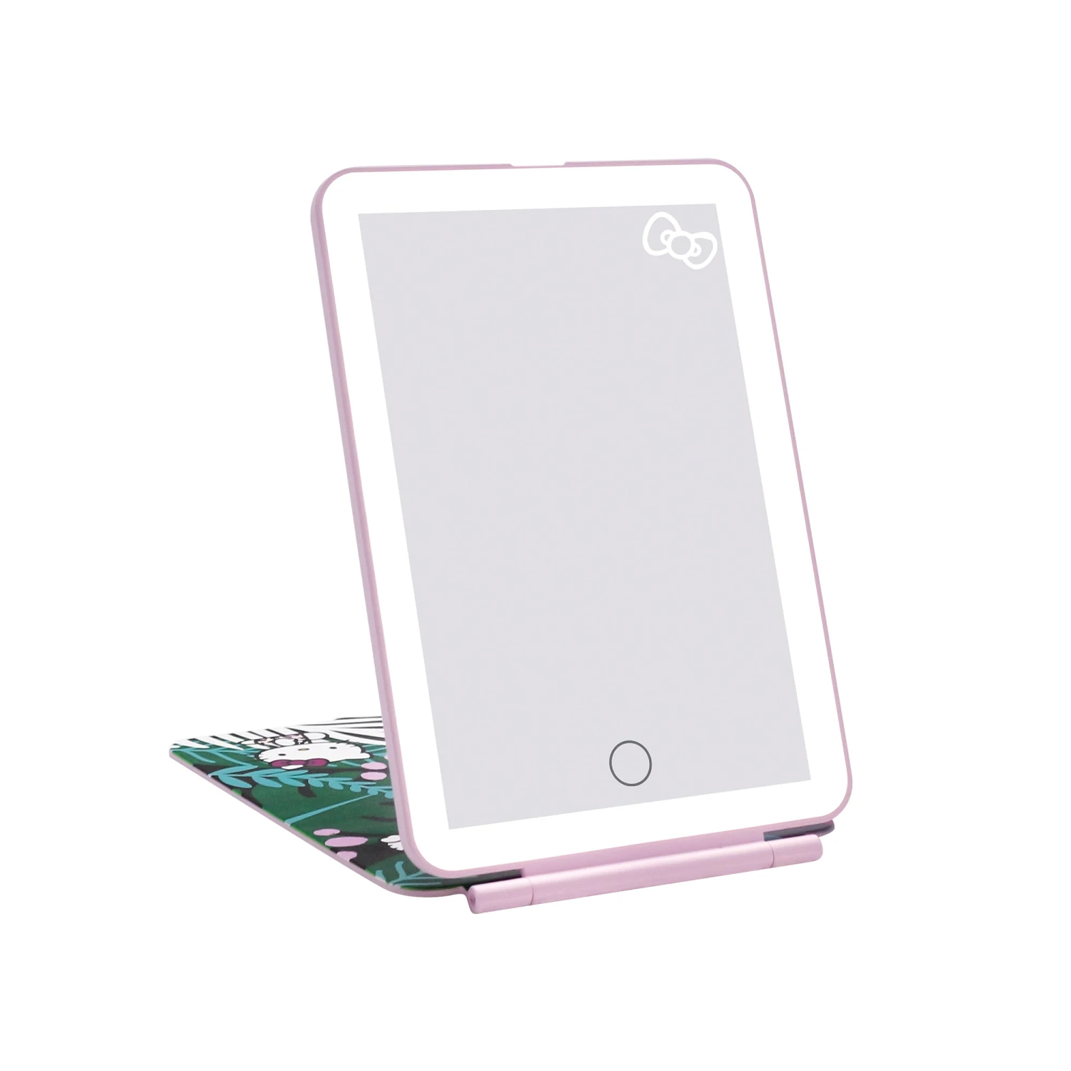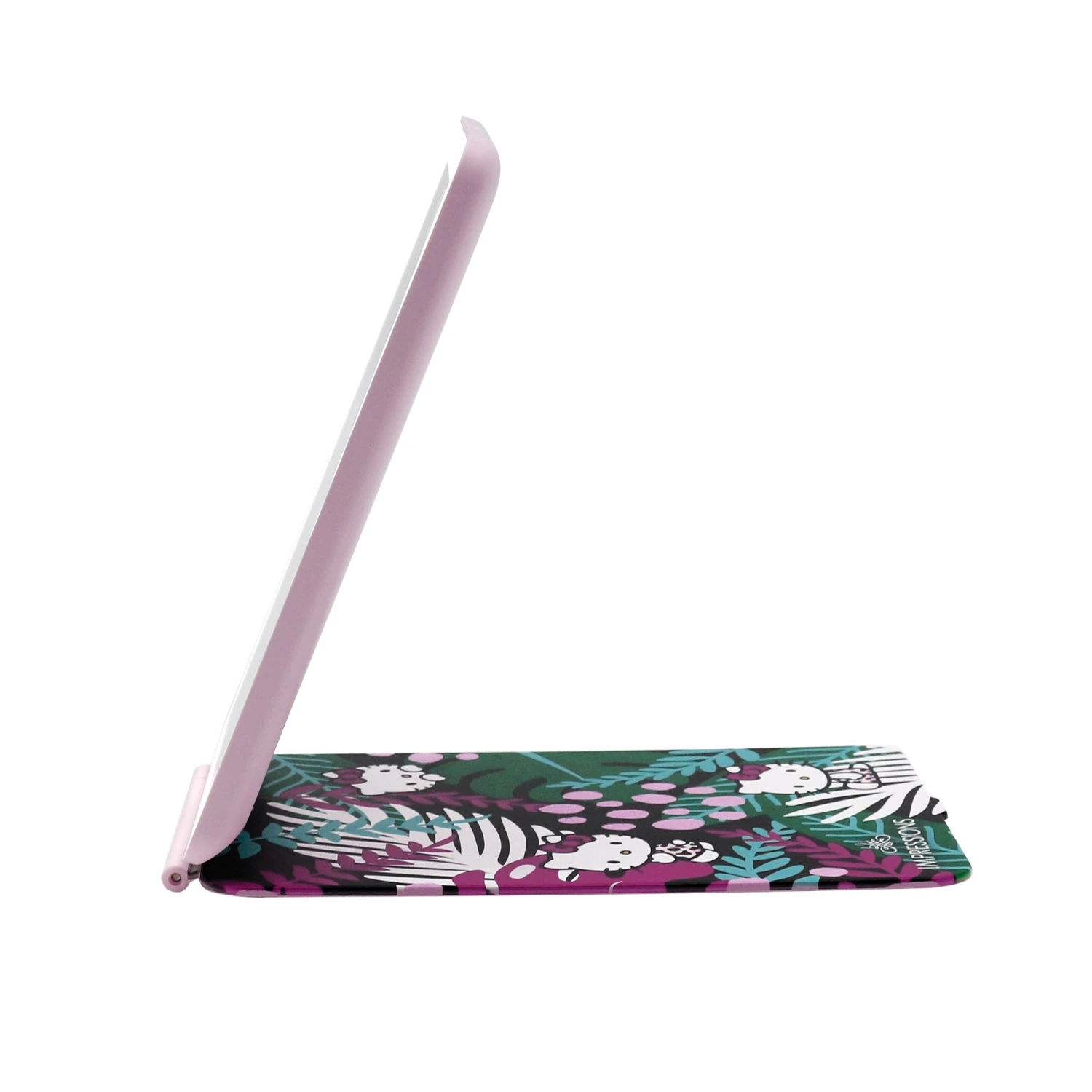Touching up just got supercute with the Hello KittyTouch Pad Mini, super-slim, micro-USB rechargeable LED travel mirror. Consistent lighting with a dimmable LED light strip, the Hello KittyTouch Pad Mini Tri-Tone LED Makeup Mirror provides all of your get-ready-glam needs. Designed with a tropical animalHello Kitty print,this mirroris unlike any other. Theuser-friendly folio cover protects the quality of the mirror and alsoserves as a base stand.