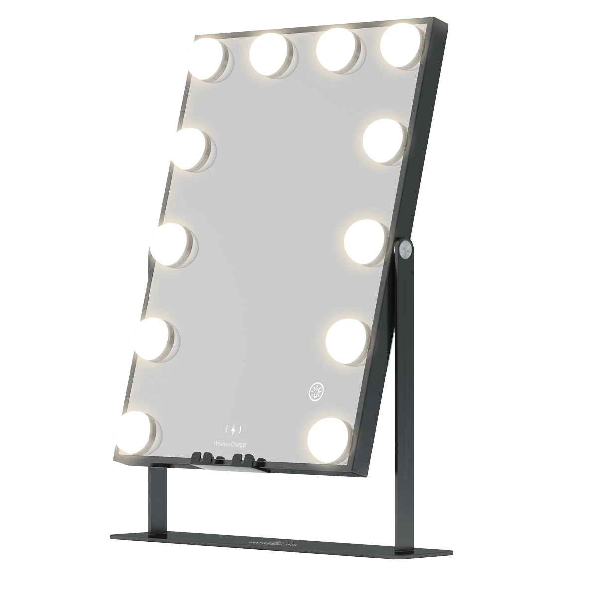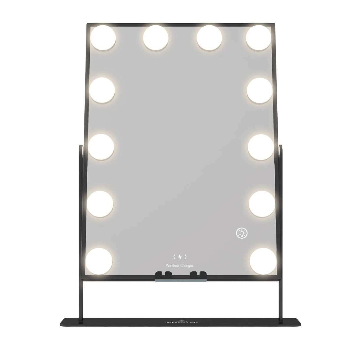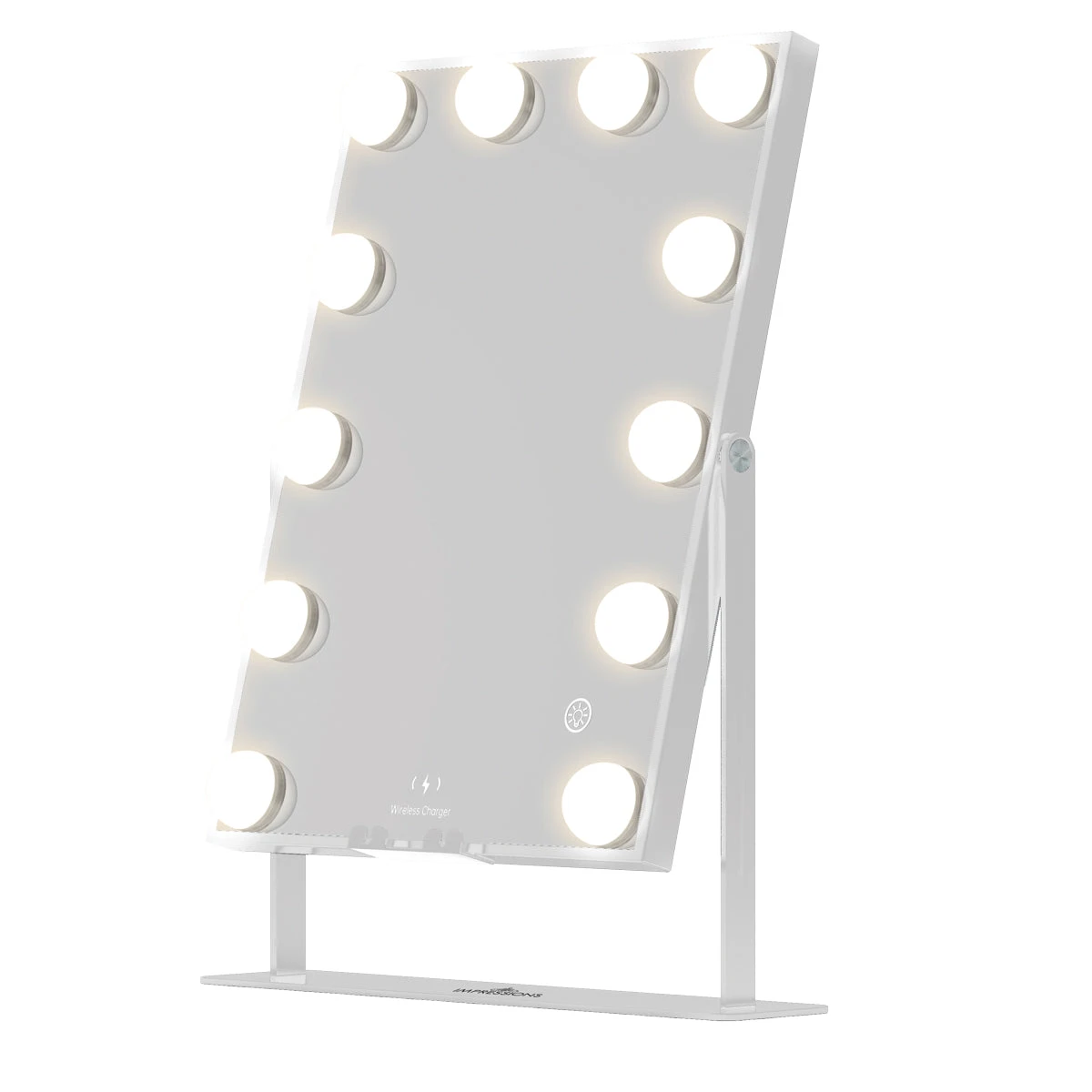 Our best-sellingHollywood XL Tri-Tone Makeup Mirror is back better than ever!Now featuring Bluetooth speakers and Wireless charging technology, you can fit this mirroranywhere and complete your vanity set! Equipped with built-in long-lasting LED Lights around the mirror for even lighting. Tap the power button to power it on/off and hold to adjust the brightness to your perfect level. Tap to switch between natural, warm, or cool lighting.