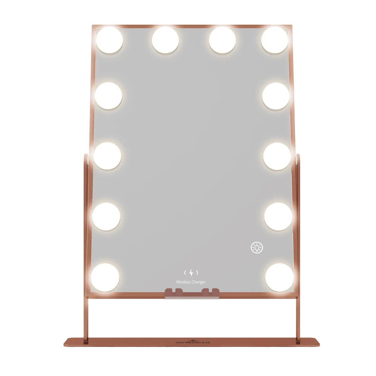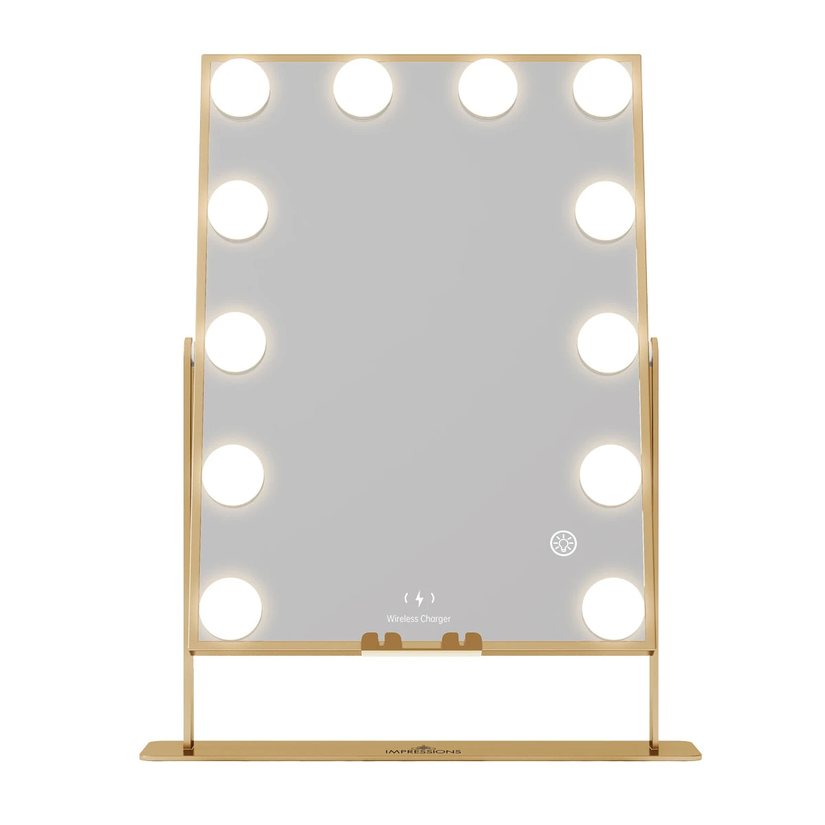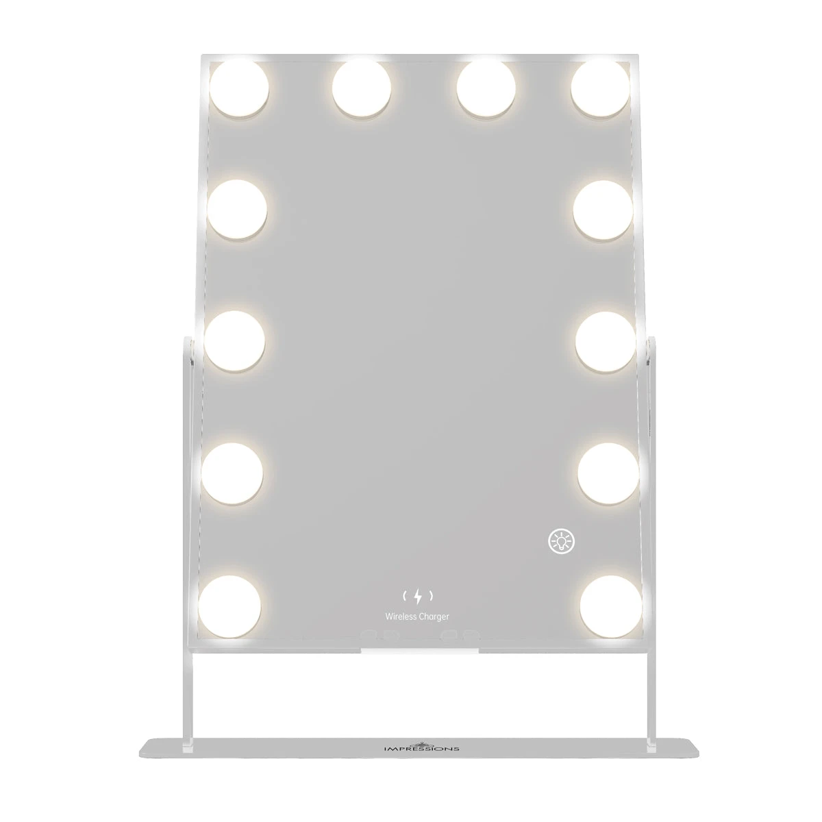 Our best-sellingHollywood XL Tri-Tone Makeup Mirror is back better than ever!Now featuring Bluetooth speakers and Wireless charging technology, you can fit this mirroranywhere and complete your vanity set! Equipped with built-in long-lasting LED Lights around the mirror for even lighting. Tap the power button to power it on/off and hold to adjust the brightness to your perfect level. Tap to switch between natural, warm, or cool lighting.