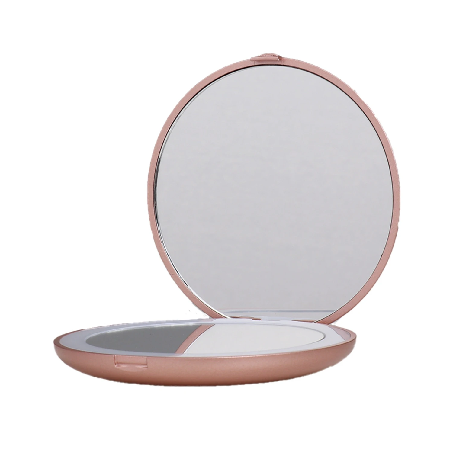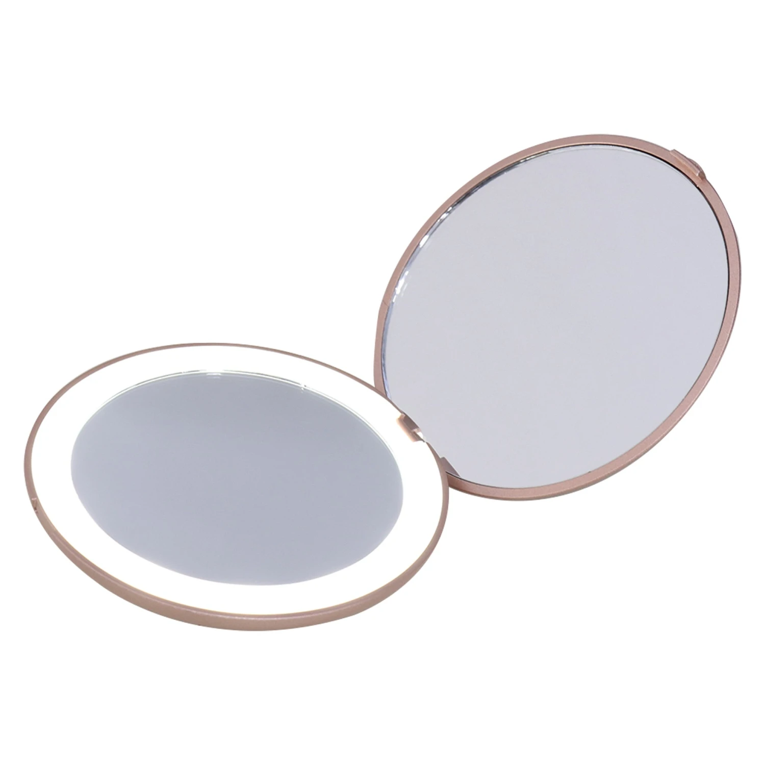 The Infinity LED Compact Mirror has an easy-to-hold design and high-quality material with a sleek glossy finish. The mirror is easy to use with just a tap to turn on and off. Our high-quality mirrors gleam with superior clarity for years to come.