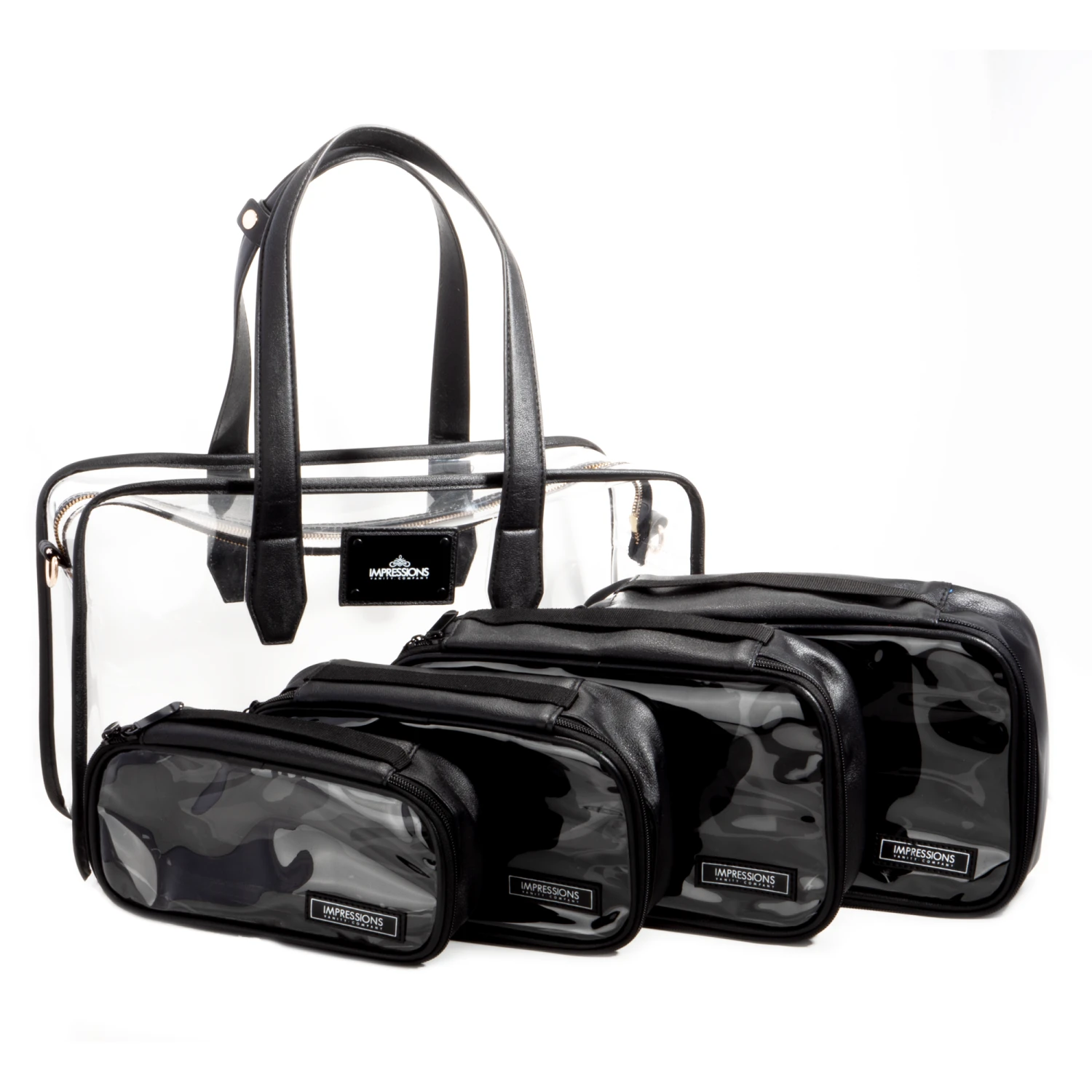 Introducing our new Paris Transparent Makeup Case to keep all your cosmetics essentials and accessories organized. This transparent makeup case comes with 4 different size transparent plastic pouches to make it easy to see what is inside each bag. Chic and functional, the makeup case set is great for taking your favorite products on the go or keeping them organized in one handbag.