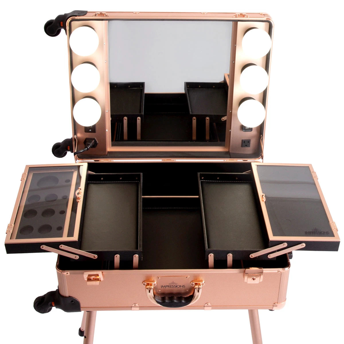 SlayCase® Pro Vanity Travel Train Case With Stand In Rose Gold Bling