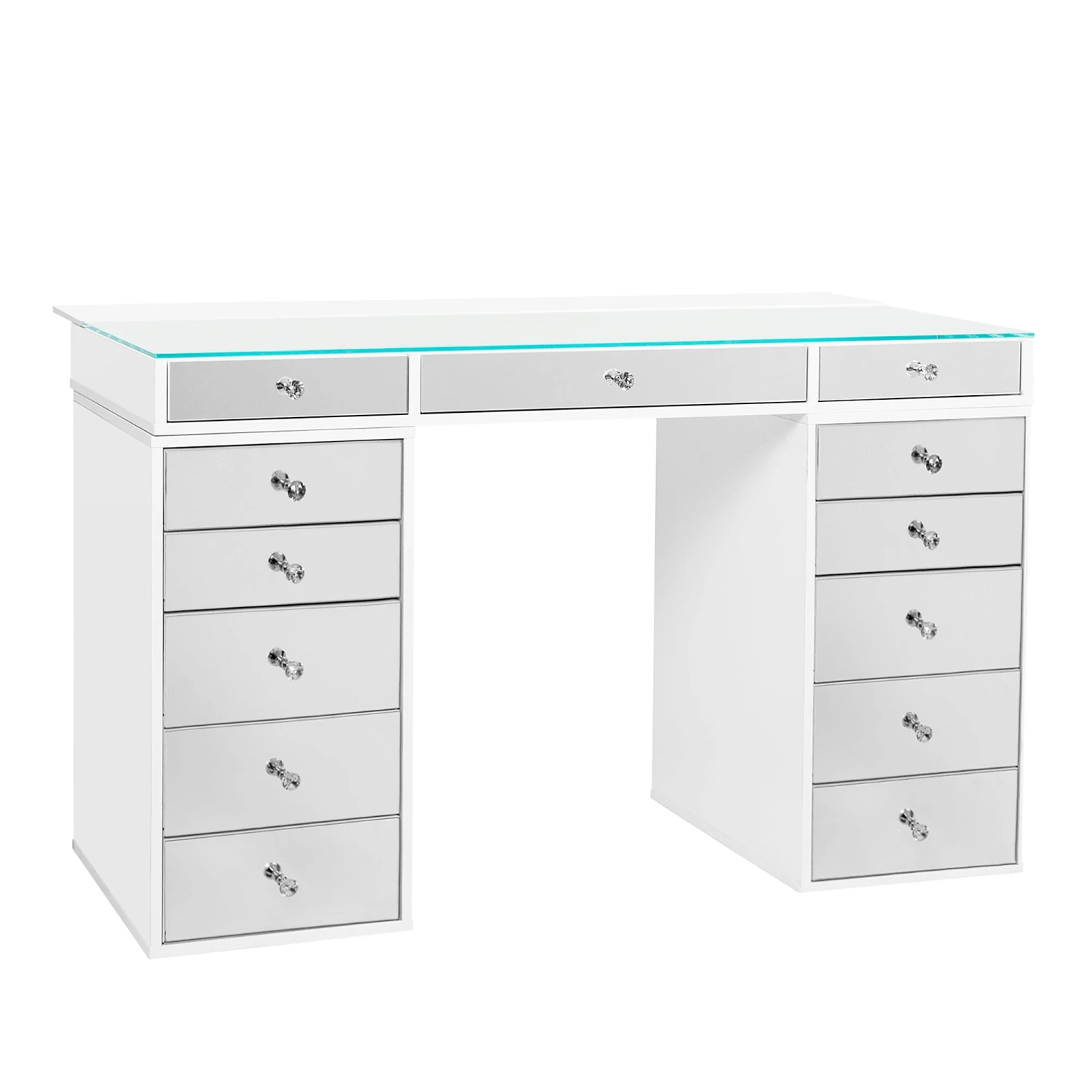 Get ready to slay all day in our SlayStation 2.0 Mirrored Tabletop andSlayStation Mirrored Drawers! This bundle features our SlayStation 2.0 tabletop that includes 3 drawers that are highlighted with our crystal lux drawer knobs along with mirrored front drawer panels. The SlayStation features an edge-to-edge clear glass top for you to display your vanity accessories and makeup!