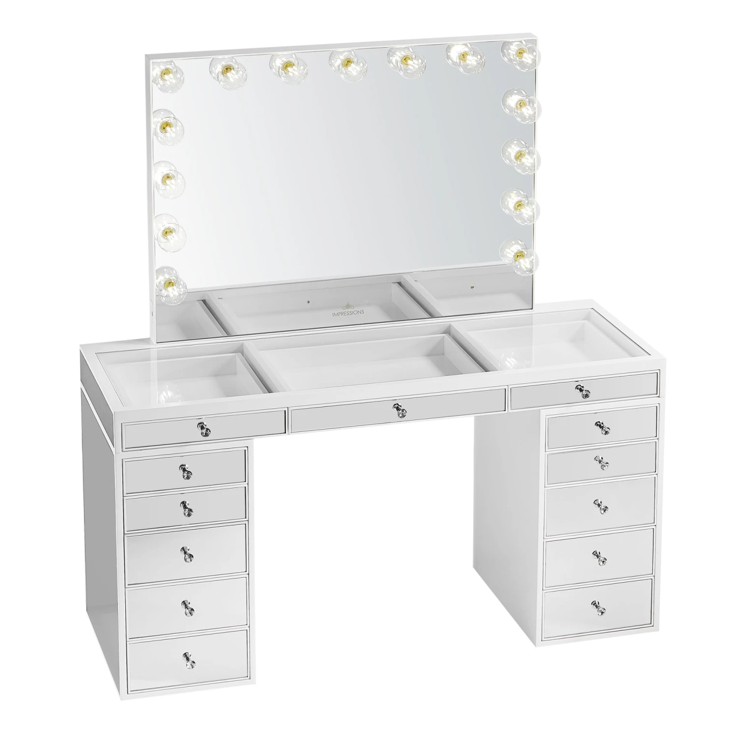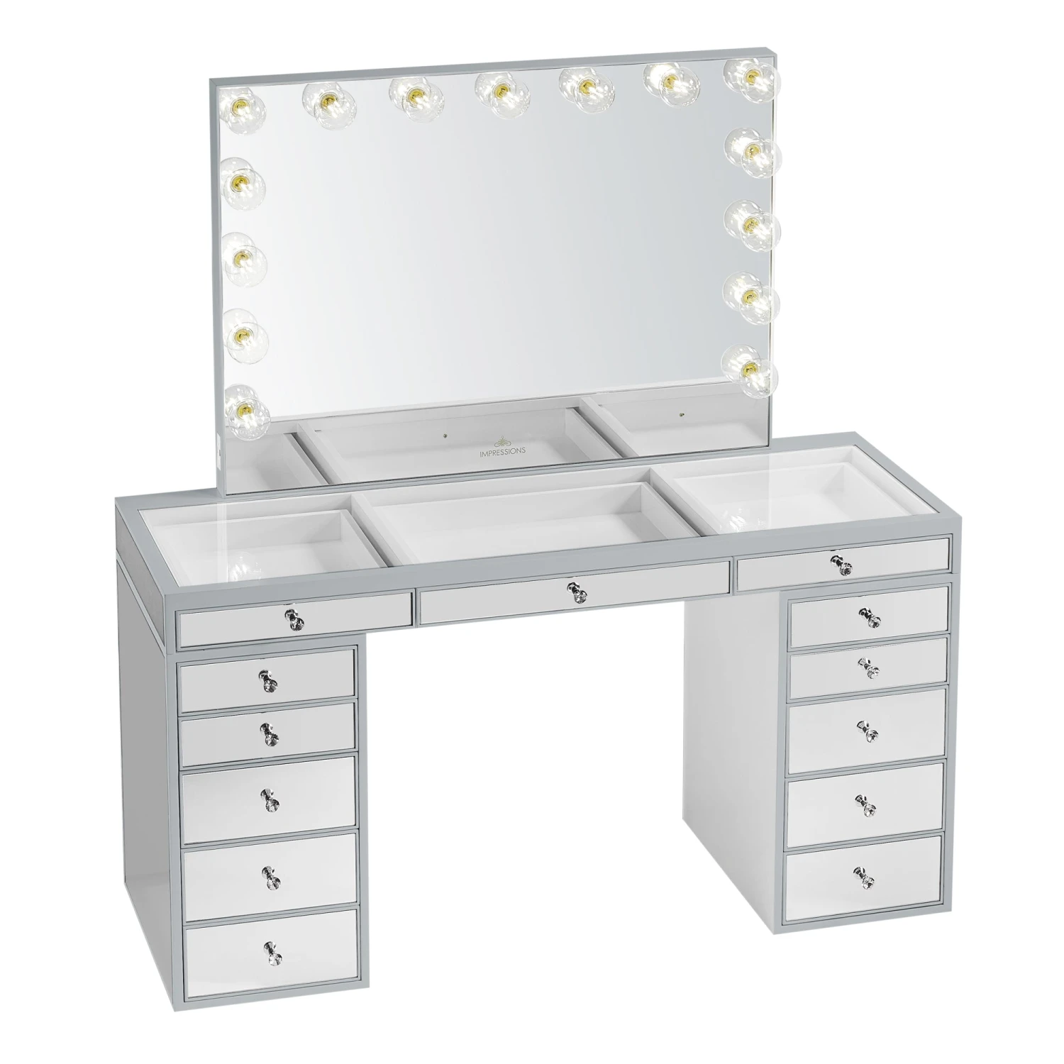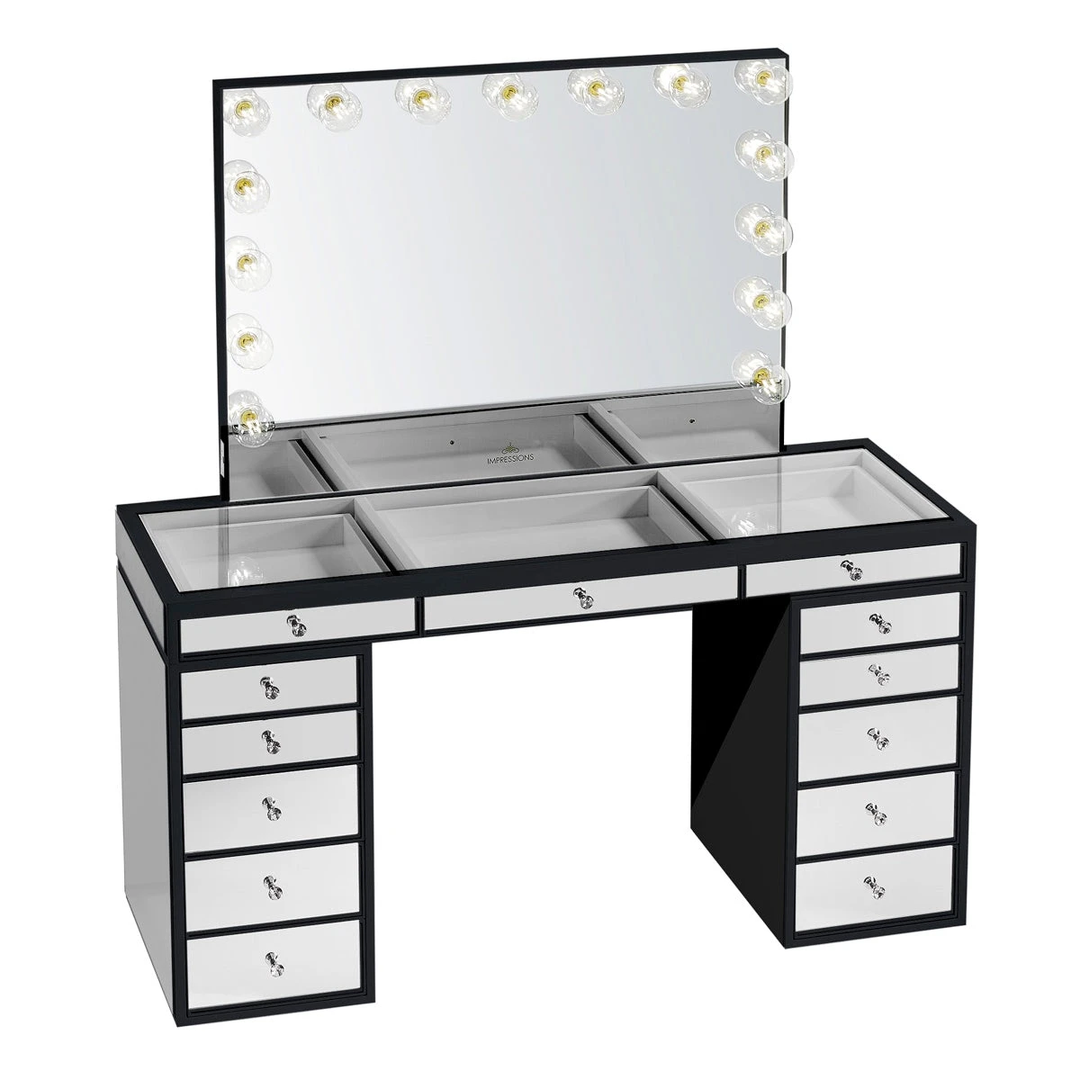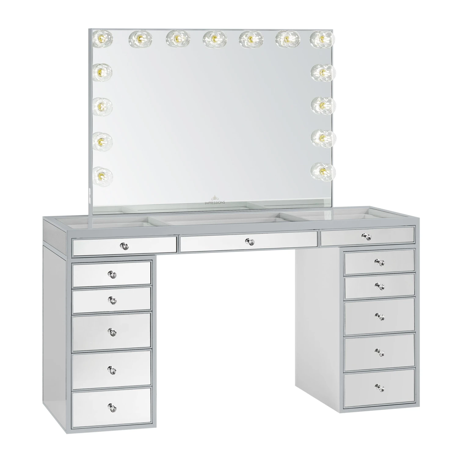 - Bundle option: SlayStation Pro Premium Mirrored Vanity Table + Glow Pro Vanity Mirror in Silver, White, or Black