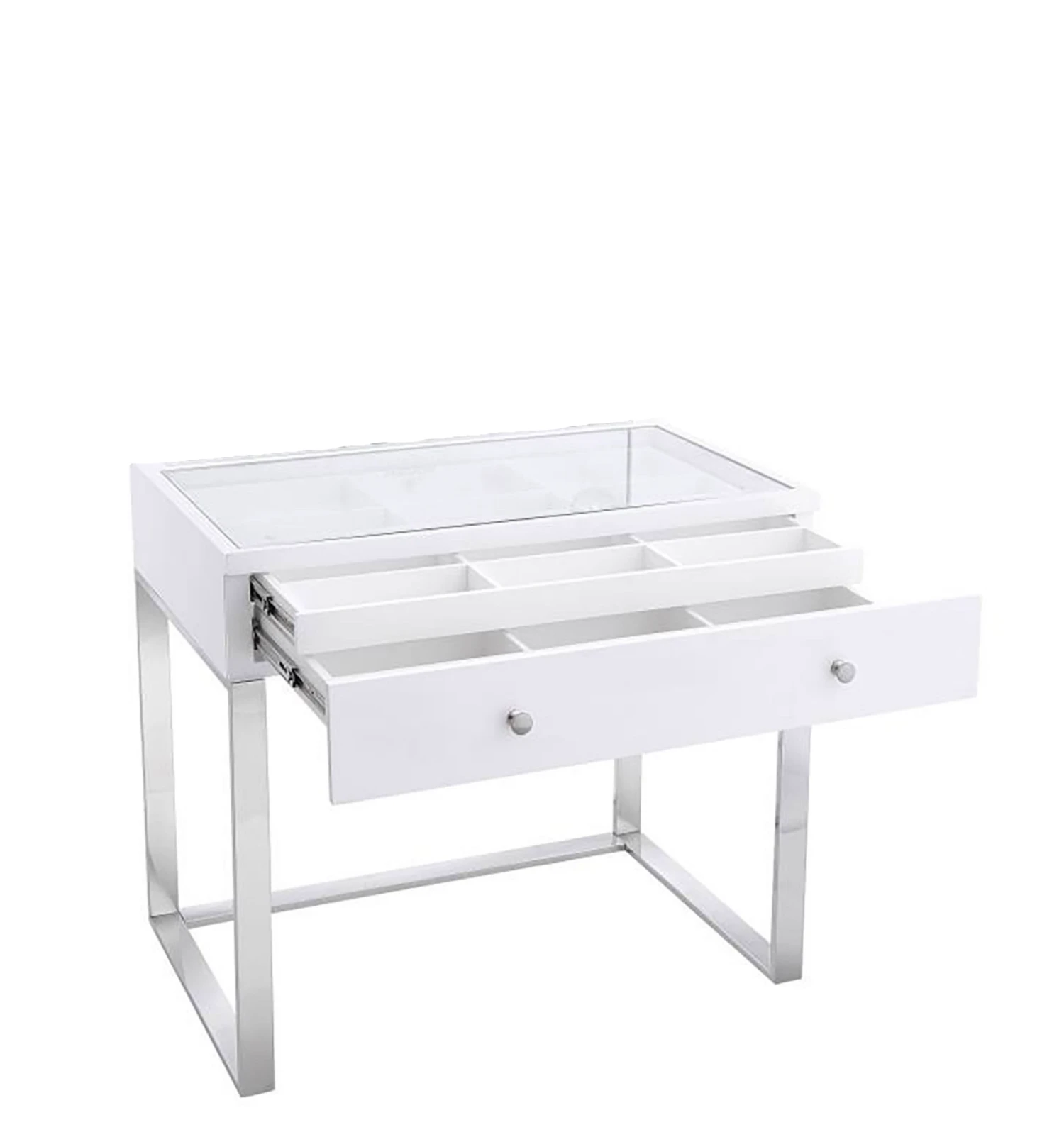 Do you have makeup tools galore? Well, we have the Slaystation with limitless space for you – Introducing the SlayStation Scarlett Vanity Table! Features one luxury main drawer with an additional inside top drawer assembled into 3 compartmental sections to perfectly separate and organize your makeup pieces. With clear glass, the top drawer showcases all your beautiful glam essentials while the bottom drawer is the perfect hide-away for storage.