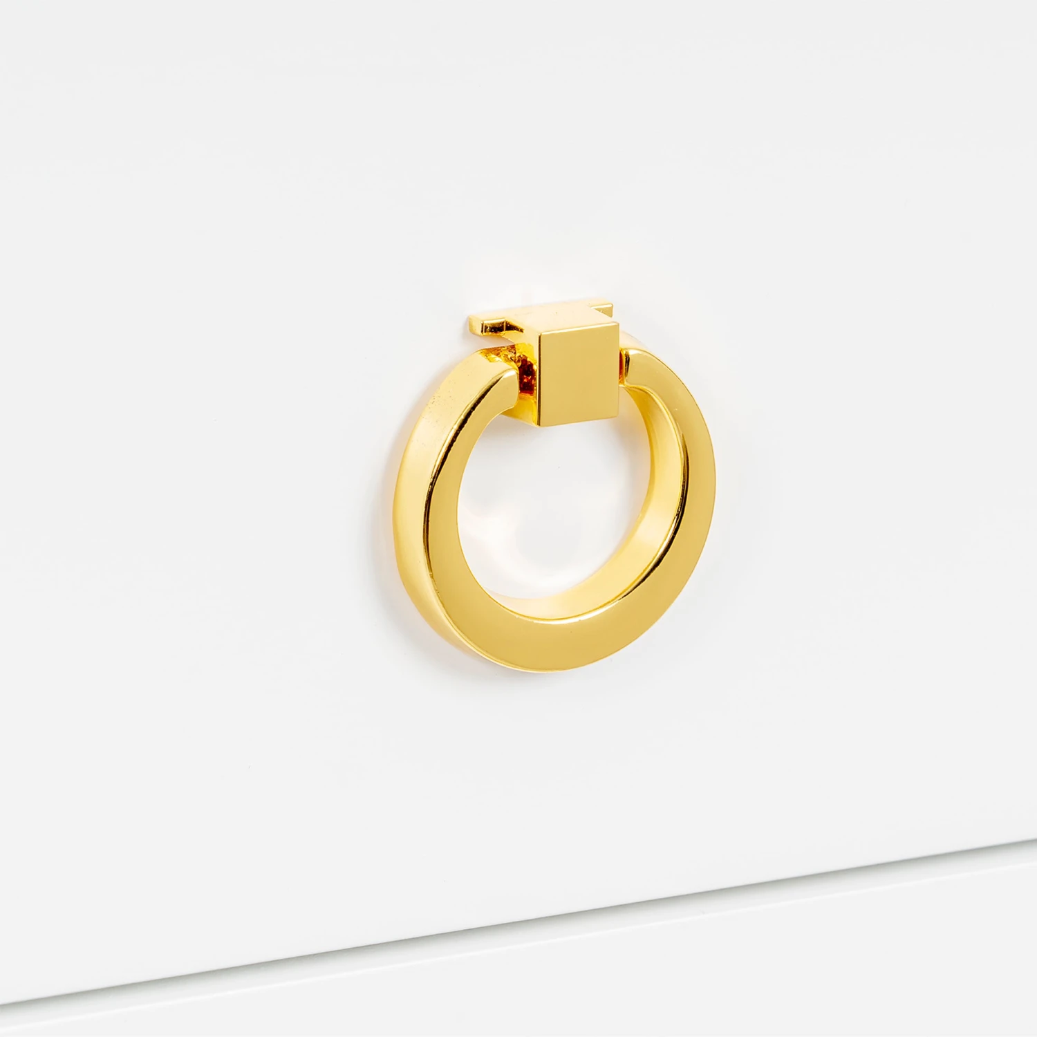 - Golden drawer knobs included