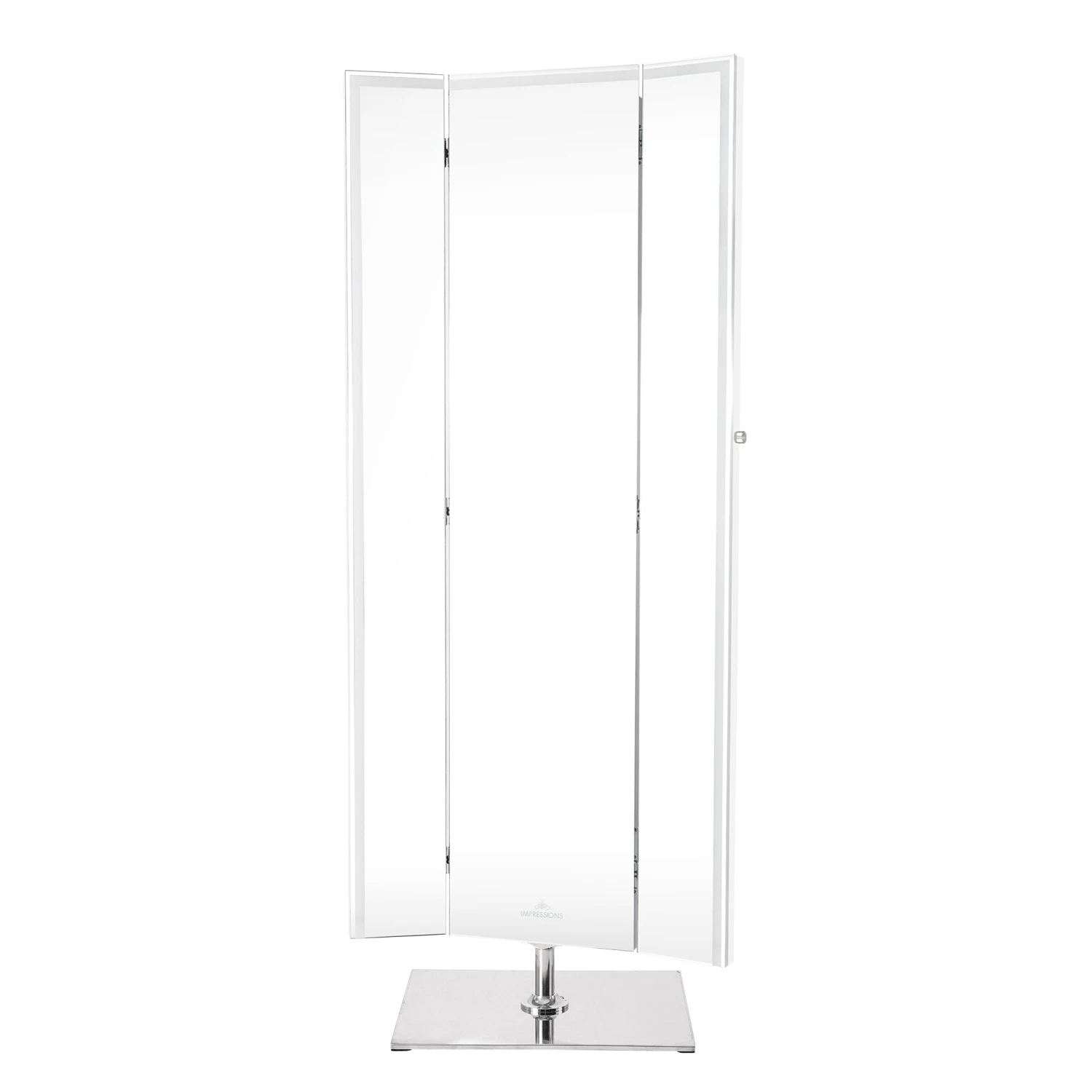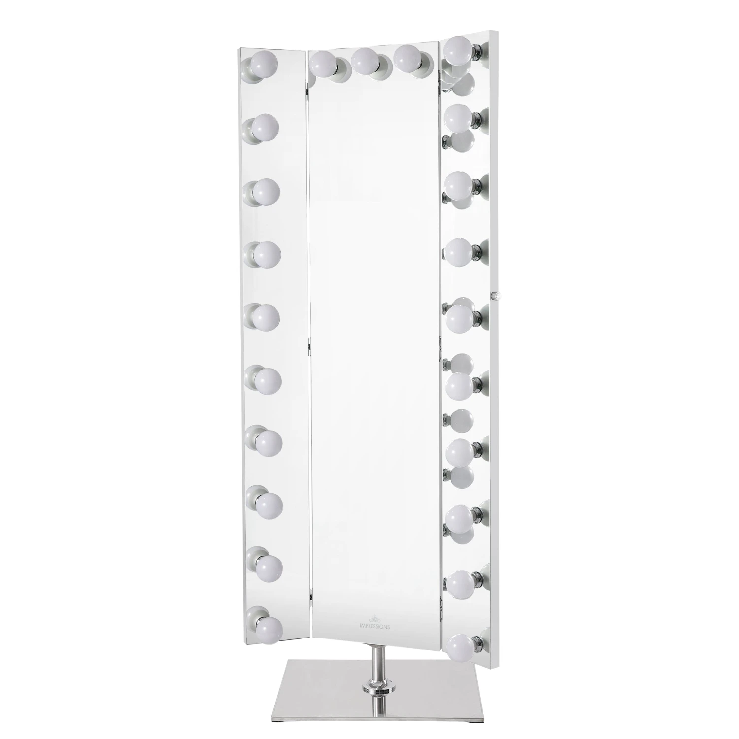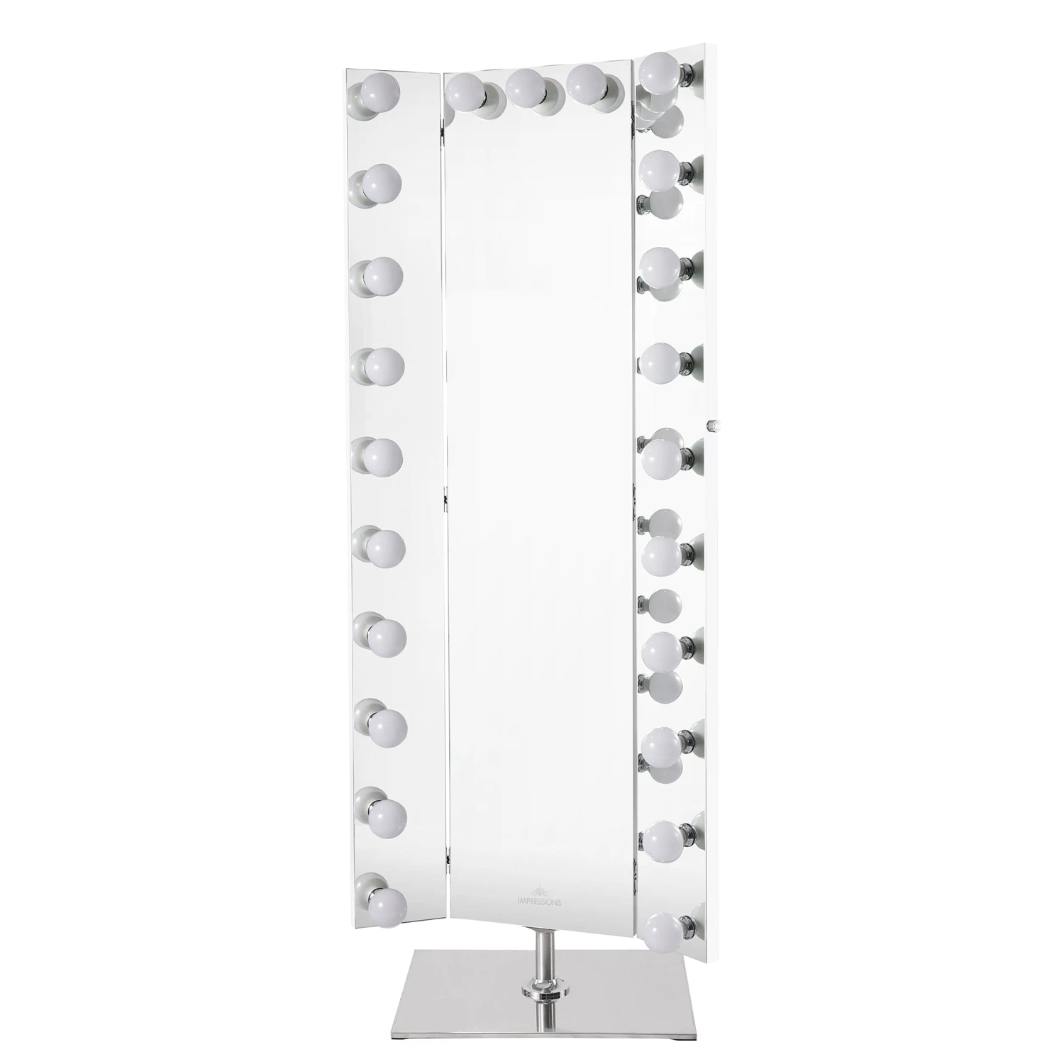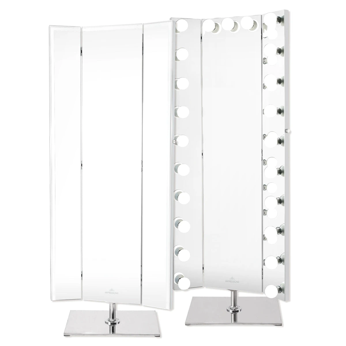 Glamour, warmth and luxury –the trifectaambience obtained with the all new TrifectaFull Length Mirror.Bordered by a high-quality LED light stripor 23LED globebulbs, providing dimmable ultra-bright studio lighting. This trifold vanitymirror adds a touch of elevated radiance to any glam room.(Powered by US standard plug-in cord.)